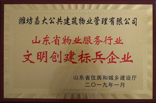 2019年1月被評(píng)為“山東省物業(yè)服務(wù)行業(yè)文明創(chuàng)建標(biāo)兵企業(yè)”